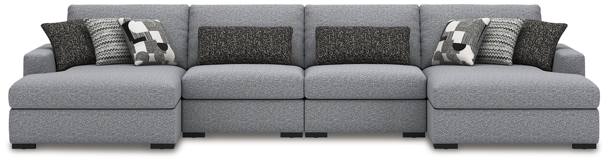 Con este seccional de doble chaise longue, puedes crear una sala de estar en la que todos disfrutarán. Su diseño contemporáneo y su tono neutro, que combina con todo, ofrecen infinitas posibilidades de estilo. Y olvídate de los derrames y las manchas: cuando llegue el momento de ordenar, simplemente abre la cremallera de las fundas Next-Gen Nuvella™ y mételas en la lavadora. ¿Necesitas un cambio de imagen? Cambia la configuración de este seccional modular para una noche de cine, recibir invitados y todo lo demás.