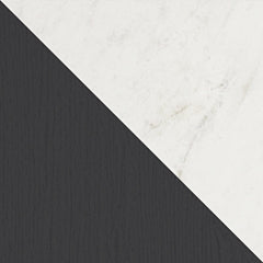 Detalles | Fabricado con madera de ingeniería (MDF/tablero de partículas/contrachapado) y laminado decorativo para lograr el equilibrio perfecto entre asequibilidad y durabilidad, Acabado negro mate con vetas de madera sutiles replicadas, Tapa de mármol blanco replicado, El laminado decorativo replica superficies de materiales naturales o artificiales con color, patrón y textura uniformes, Manijas con acabado en tono bronce claro, Estante abierto, 2 cajones de deslizamiento suave, Los interiores de los cajones están revestidos con un laminado de lino sintético para una apariencia limpia y acabada, Iluminación ambiental debajo de la parte superior, Cable de alimentación incluido; Listado por UL, Requiere un ensamblaje menor | |