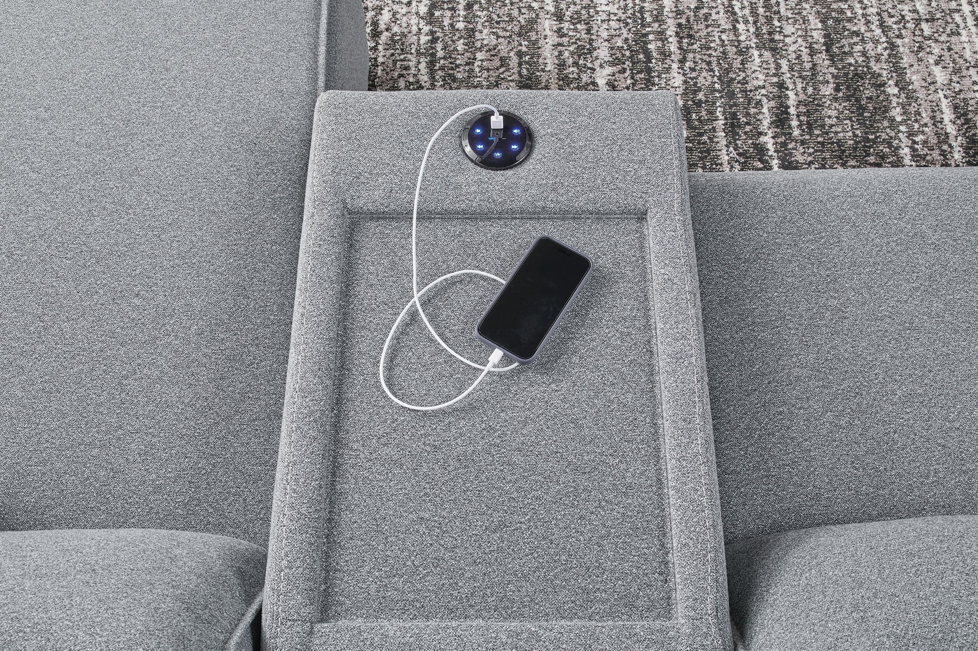 Un aspecto moderno y actual es genial. Pero, en definitiva, lo que buscas es un descanso que requiera poco mantenimiento. Con la tela de alto rendimiento de este seccional reclinable eléctrico, limpiar los derrames es pan comido. Su diseño modular se adapta a tus necesidades cambiantes. Y los altavoces integrados con conectividad inalámbrica de las consolas de audio convierten tu sala en un centro de entretenimiento. Es la prueba de que el diseño moderno y la comodidad superior van de la mano.