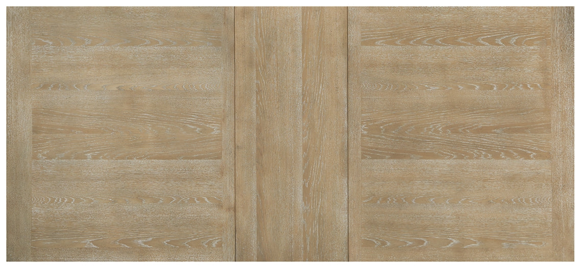 Detalles | Fabricada con maderas duras sólidas, chapas seleccionadas y sustratos de MDF, acabado de dos tonos (blanco antiguo y tono de madera marrón grisáceo claro), base de caballete doble, la hoja central removible se guarda convenientemente debajo del tablero de la mesa, la mesa se extiende tirando de ambos extremos y colocando la hoja, asientos de hasta 8, requiere ensamblaje | |