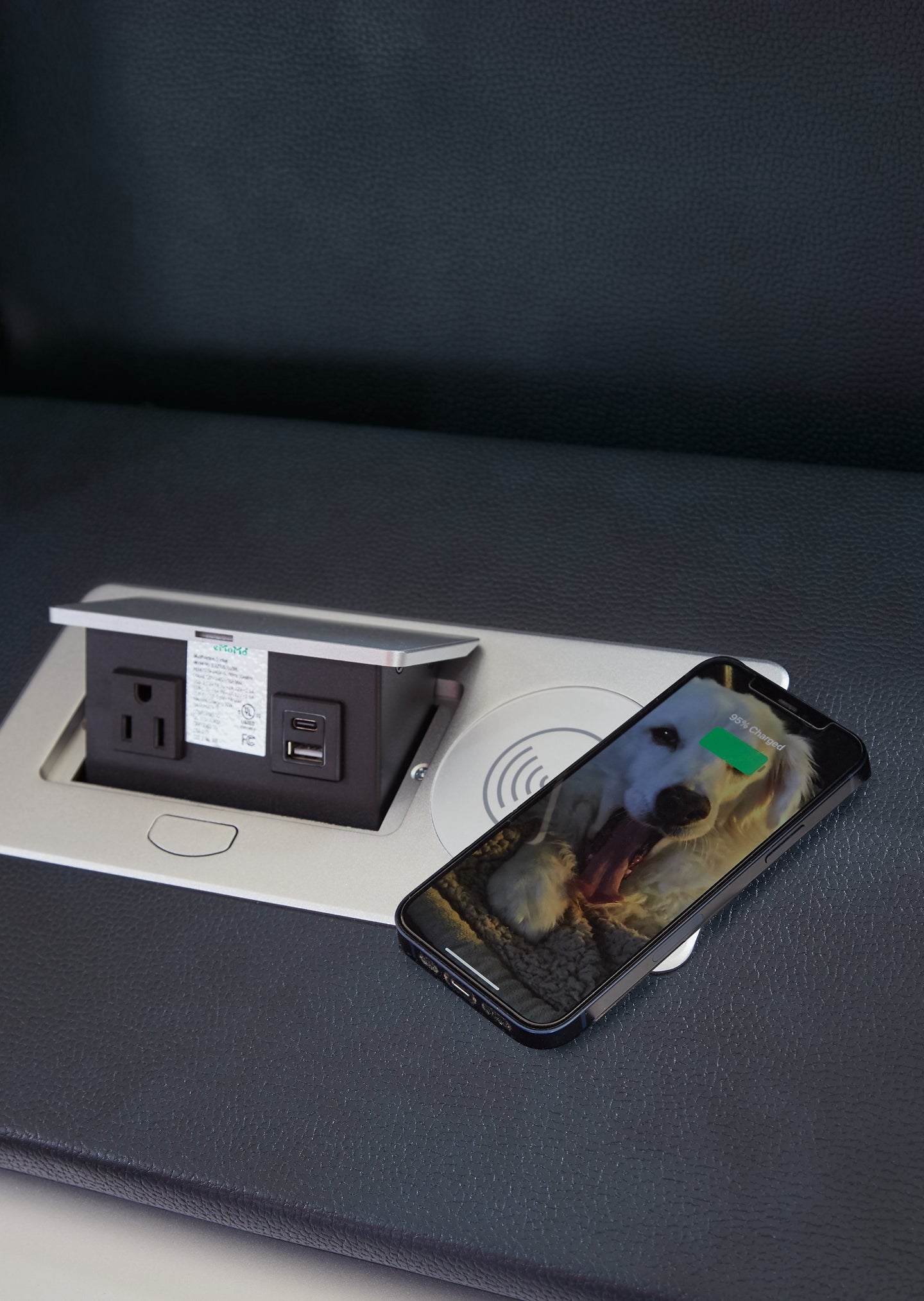 This power reclining seating set goes beyond basic comfort. It upgrades the everyday, turning your living room into an entertainment hub. Don’t want to leave your seat? Keep essentials in reach with assorted charging options, cup holders and storage arms. You can create an even cooler vibe for family movie nights and friendly gaming matches with LED lights. And your sleek style isn’t compromised—its diamond stitching and streamlined arms recall the aesthetics of luxury automobiles.