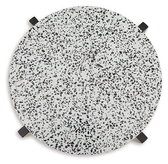 Dale a tu sala de estar contemporánea un toque moderno y funcional. Esta mesa auxiliar es un elegante complemento para sentarse, manteniendo el café de la mañana y los cócteles del fin de semana a mano mientras descansas. Ya sea que tu espacio sea neutro o luminoso con toques de color, el tablero de terrazo blanco y negro de la mesa encaja a la perfección.
