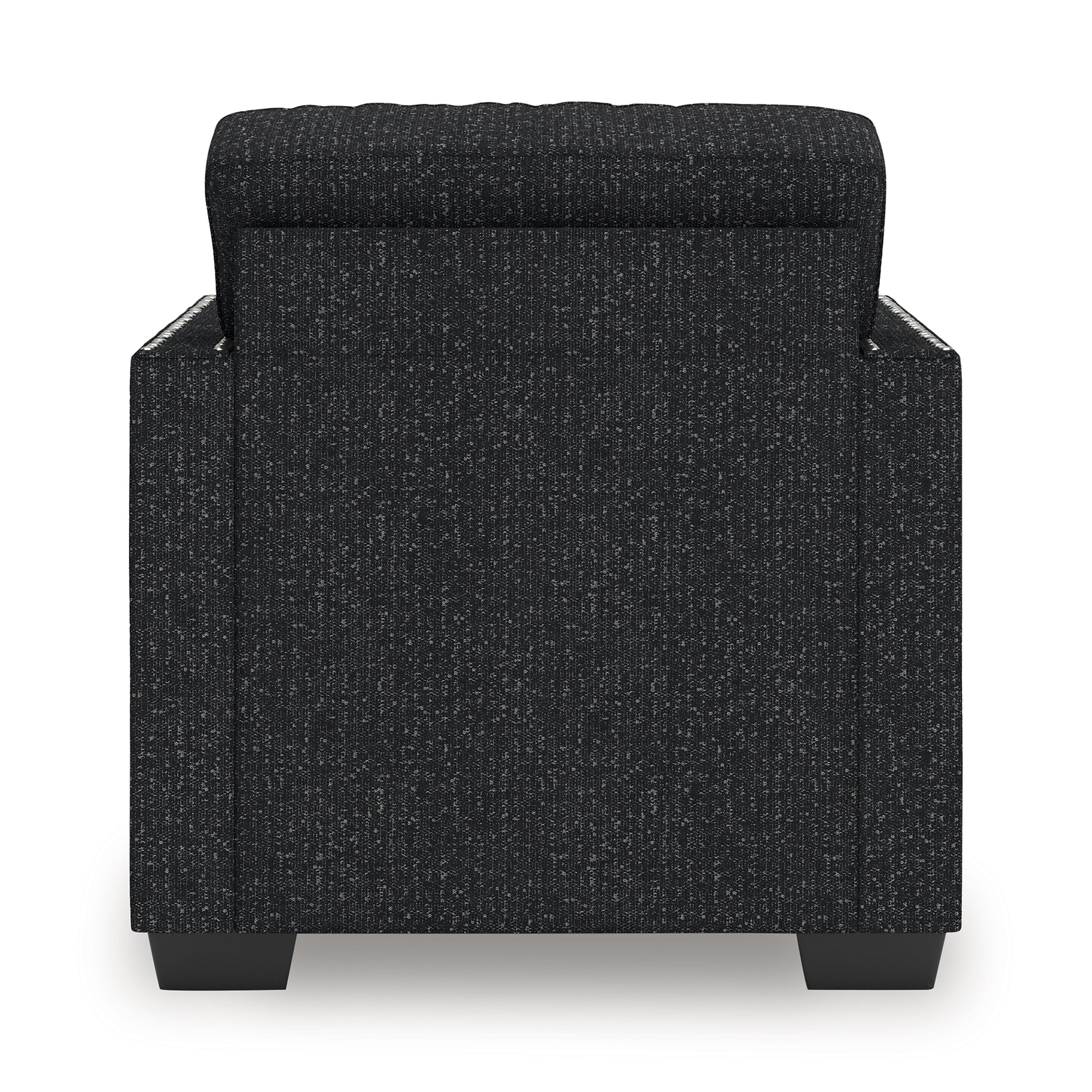 This stunning chair leaves a lasting impression. Its cozy cushions, chic coal-colored upholstery and striking nailhead trim are a perfect blend of comfort and contemporary design. And here’s the showstopper—ambient red, white and blue LED lighting along the chair's base. The look is simply wow.