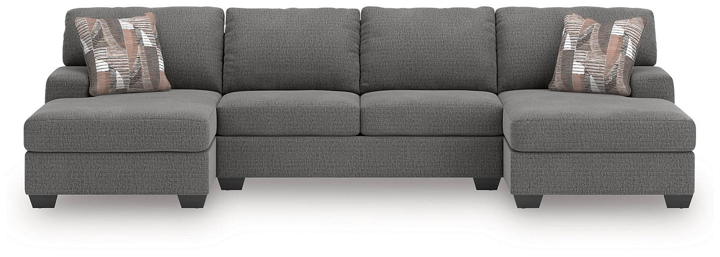 Why choose between classic comfort and modern design? This sleeper sectional with double chaise welcomes day-to-day relaxation in style. Its dimensional, menswear-inspired upholstery brings a designer touch to the easygoing silhouette. A built-in full mattress provides extra sleeping space when needed and seamlessly tucks away when not in use. Gear up for game night or settle in to stream your favorite show—this sectional is an ideal supporting character for your living room hangs and overnight visits.